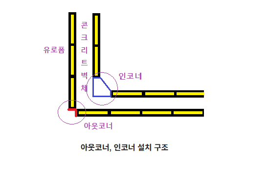 필요에 따라 각도에 맞는 이형 인/아웃코너 자재를 쓰기도 합니다.